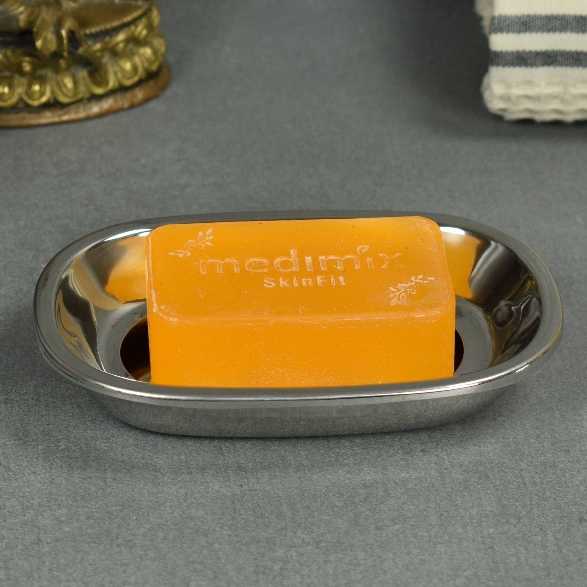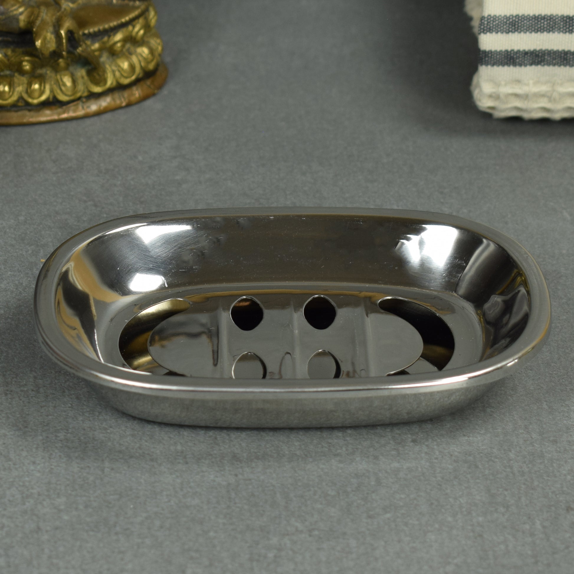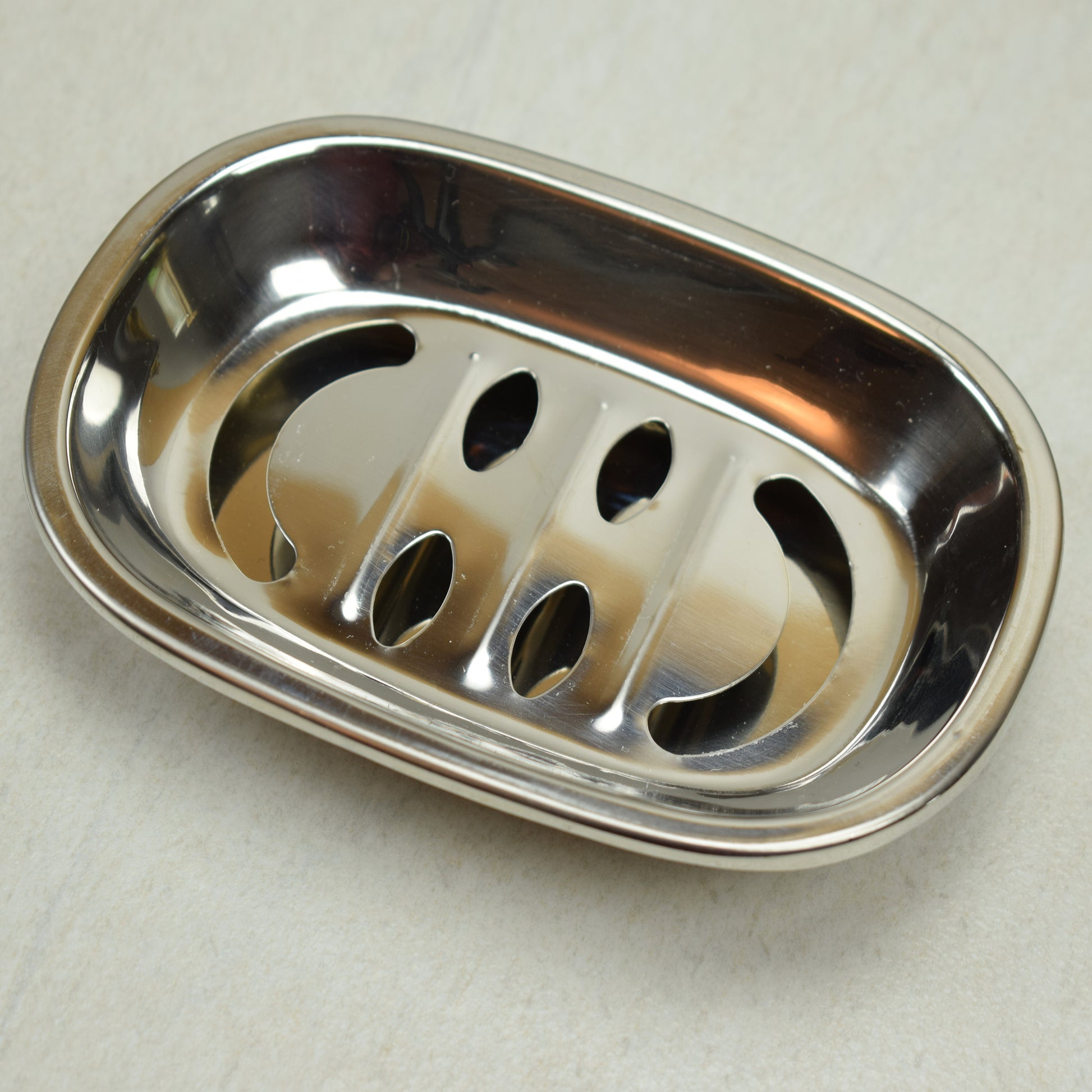 Tvådelat ovalt tvålfat i rostfritt stål.